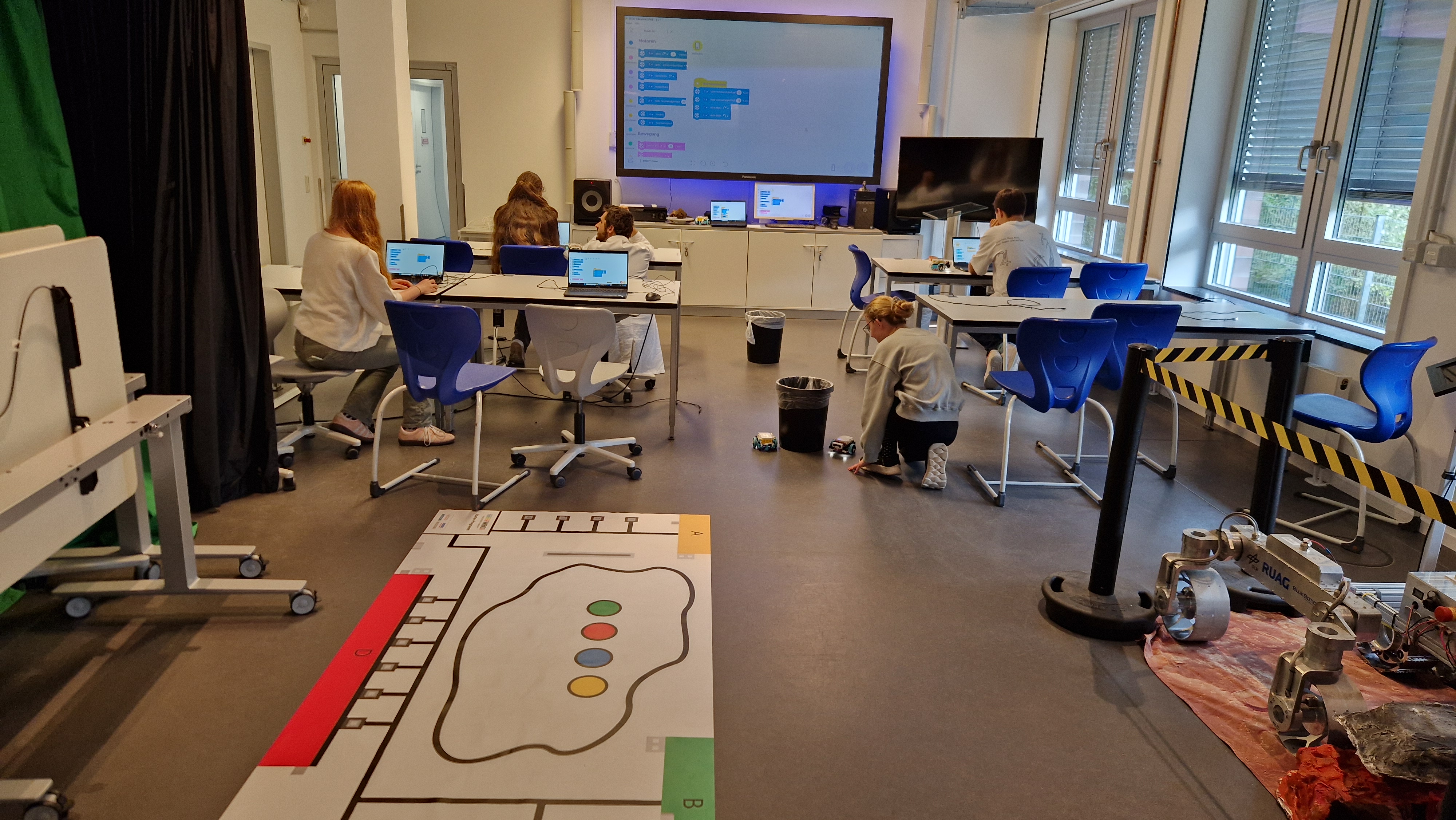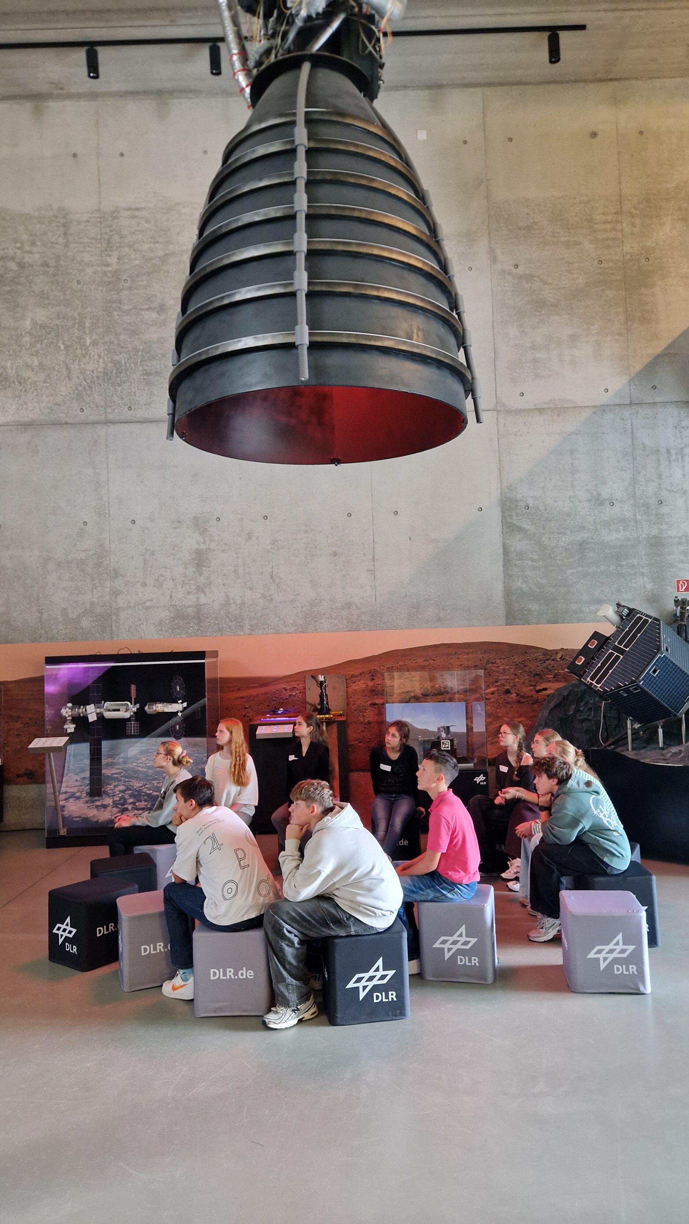 Die Teilnehmer*innen der stratoflights AG haben an einem Nachmittag das DLR Bremen besucht. Die Schüler*innen haben Einblicke in aktuelle Forschungsprojekte bekommen, u.a wie die Landung von Raketen auf dem Mond/Mars getestet wird. Im Anschluss haben die Schüler*innen in Workshops gelernt wie Roboter programmiert und Bauteile für den 3D-Druck designed werden. Darüber hinaus wurde der Effekt des Vakuums im Weltraum auf Körper und Gegenstände untersucht.