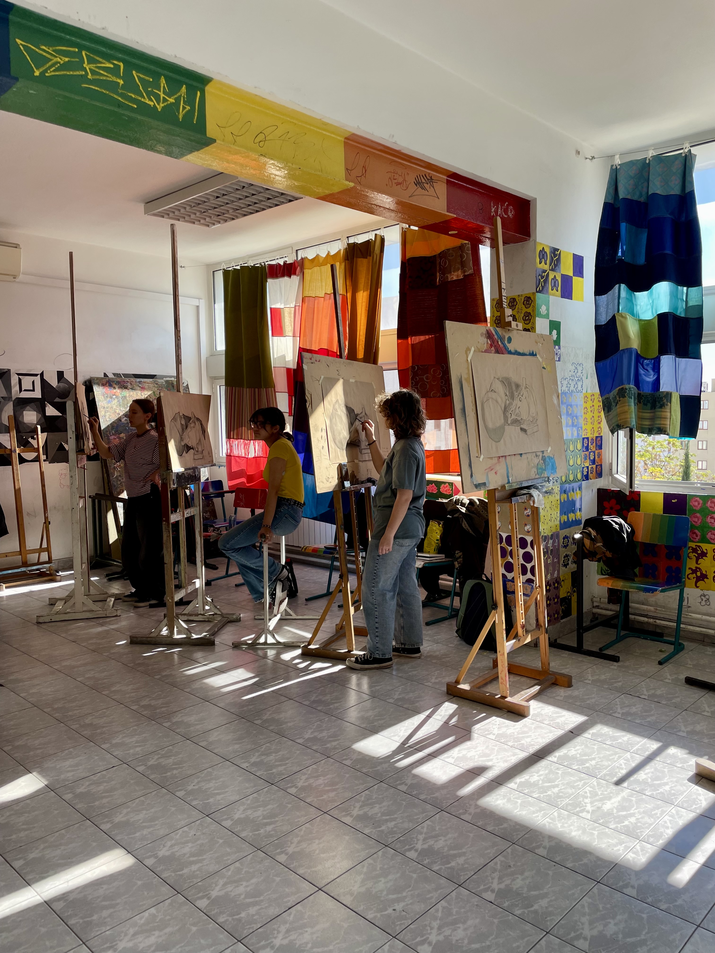 Im Zentrum der Woche stand der Besuch der staatlichen School of Fine Arts Split. Die Schule umfasst die Jahrgangsstufen 9 bis 12 und führt nach vier Jahren zum Abitur mit künstlerischem Schwerpunkt. Die Aufnahme erfolgt über eine Eignungsprüfung. Nach erfolgreicher Aufnahme spezialisieren sich die Schüler:innen auf einen der Fachbereiche: Grafikdesign, Malerei, Bildhauerei, Fotografie, Industriedesign oder Modedesign.